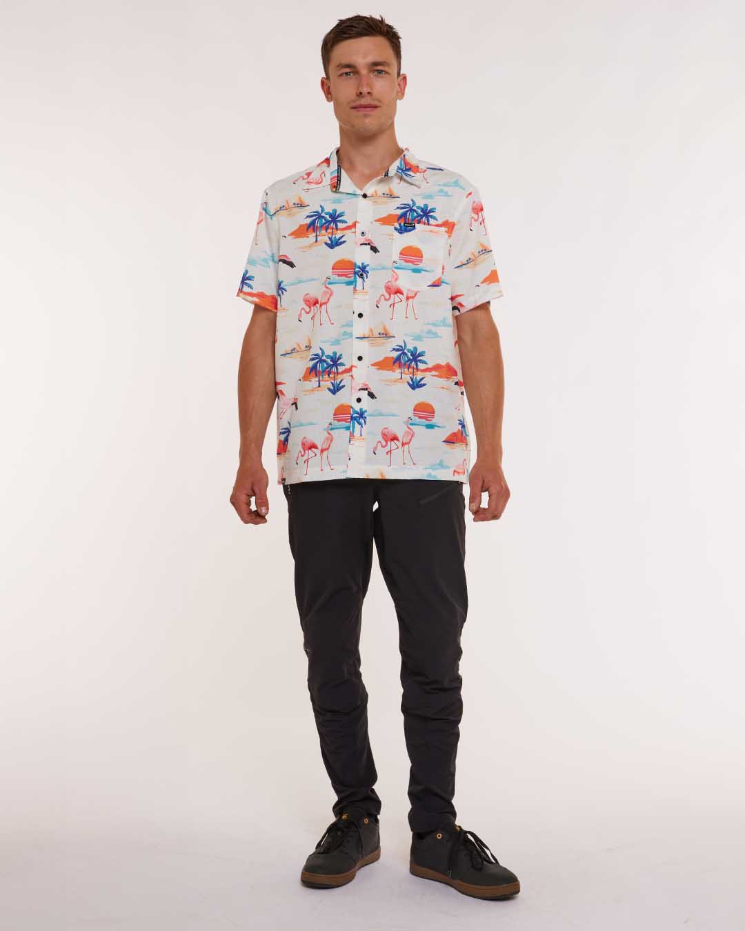 Pimp it up with the classic party shirt look. Ready for a ride and a post ride chill.